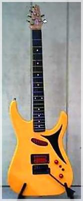 With all of its other hot rod features like locking tuners, back-routed trem, and complicated wiring with fancy switches that give it 10 distinct sounds with only two pickups! This is the third neck on it. The first one warped and the second one sucked. This neck is great. The funny-shaped headstock was cut down from a strat-shaped head in effort to improve the E and B string response. It worked well.